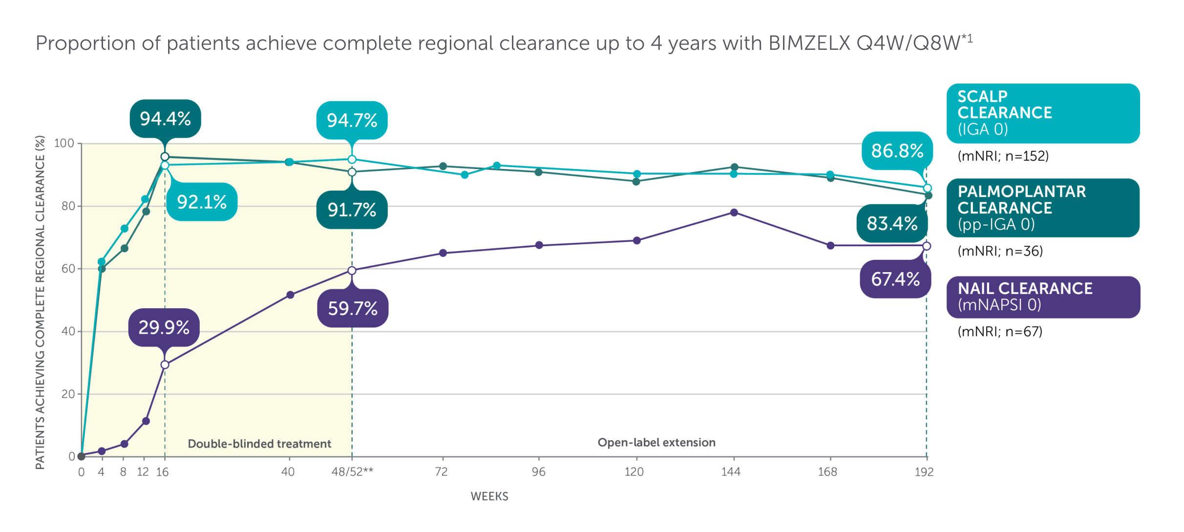 BIMZELX demonstrated high rates of complete clearance for high-impact sites up to 4 years1