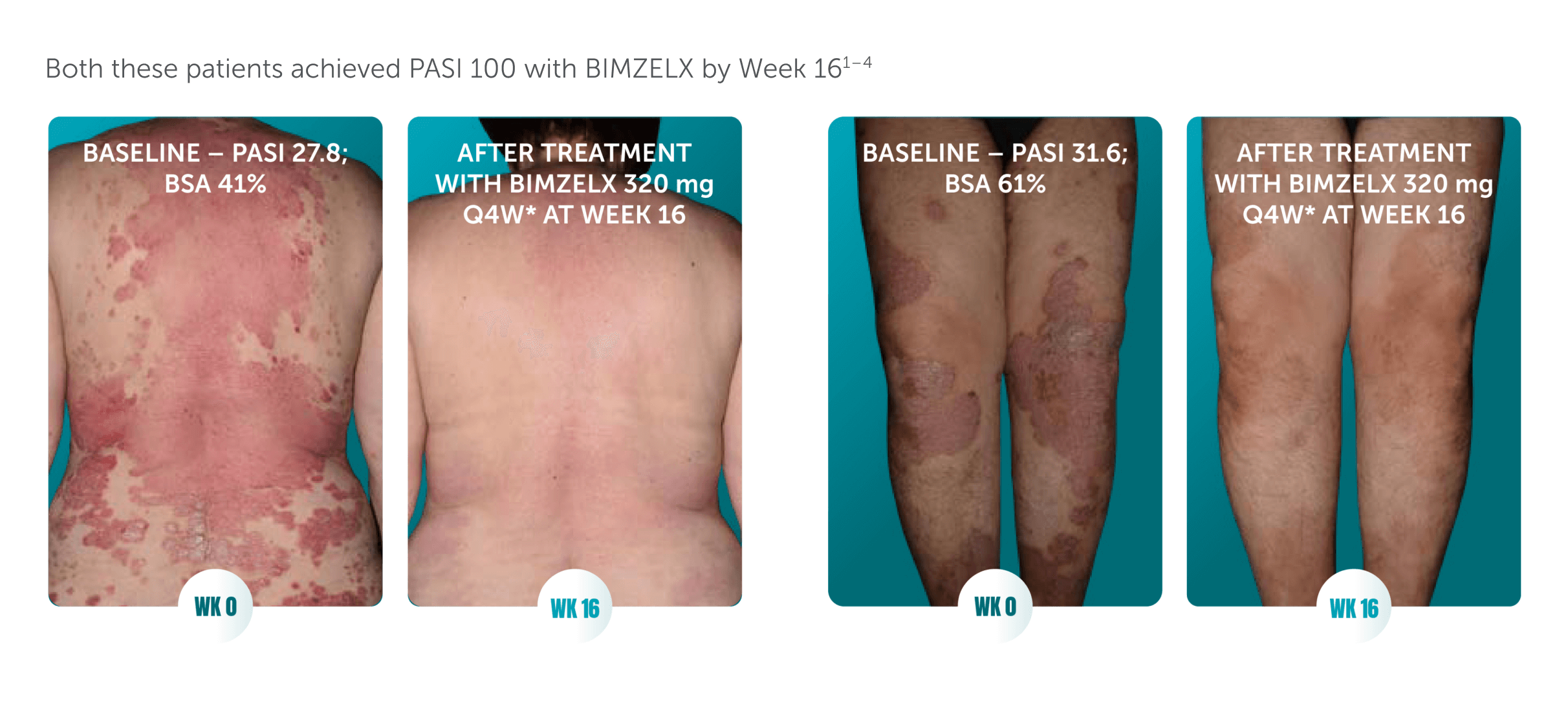 Patients receiving BIMZELX had visibly improved skin clearance at 16 weeks1–4
