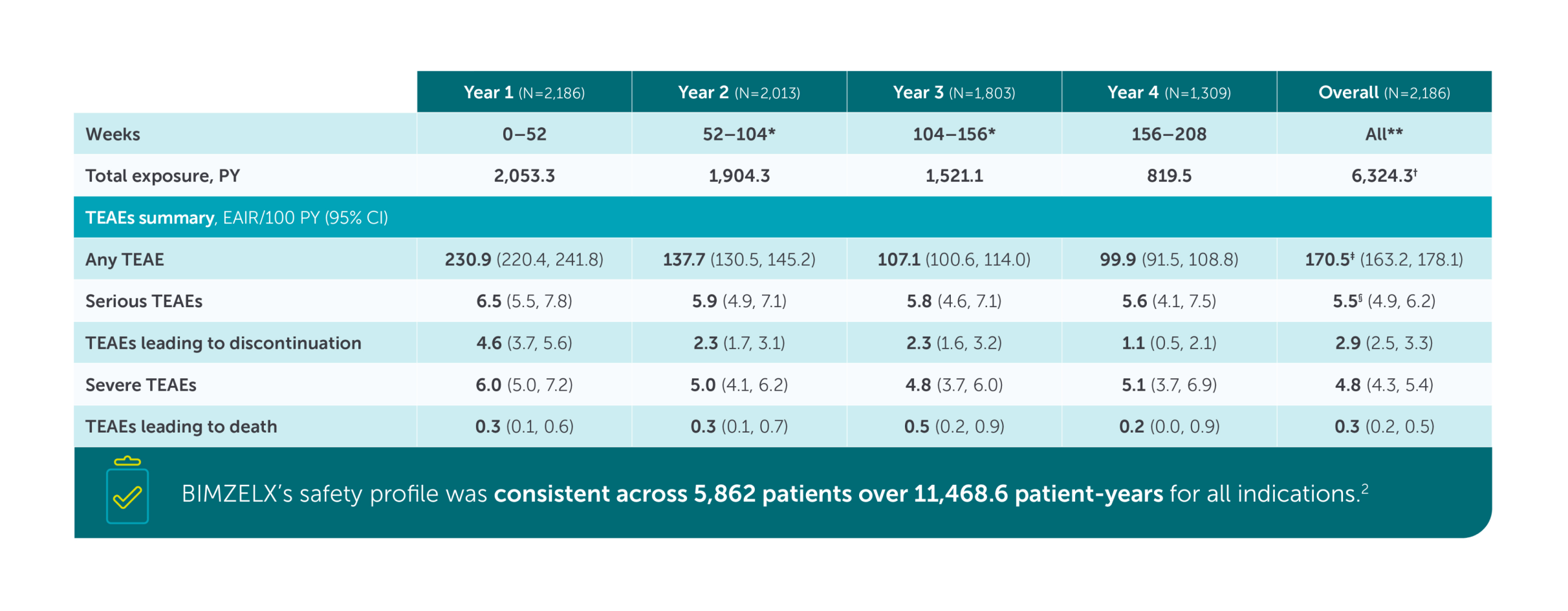 BIMZELX demonstrated a consistent safety profile over 4 years among patients with PsO1